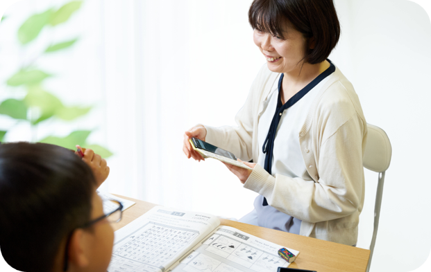 最新の教育アプリを活用し、お子さまが大好きなゲームやクイズなど、飽きずに続けられる工夫を凝らしたレッスンを行っています。